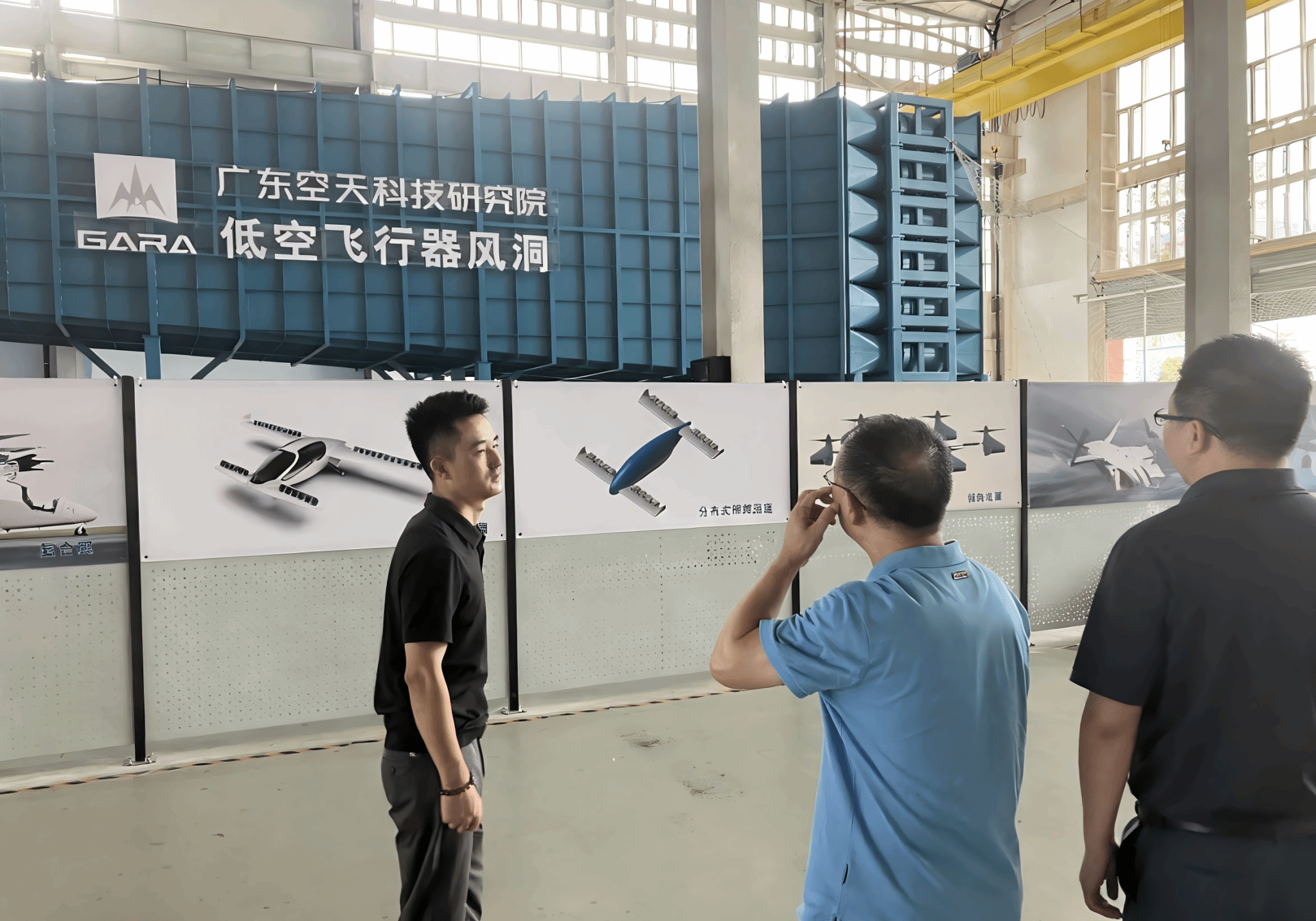 考察团一行参观了广东空天科技研究院低空飞行器风洞和无人机操控员培训点。作为经认证、正投入使用的培训基地,拥有完善的设施配置、完整的课程体,从理论教学教室、模拟飞行训练舱到实飞训练空域,考察团进行了全面考察,并就实验室如何集成教学培训、模拟训练、资质认证功能,以及如何制定安全管理规范等问题,与负责人进行了交流。另外,考察团成员就实验室功能分区规划、校企合作机制、设备选型等具体问题,与负责人进行了深入细致的探讨,为我集团思考如何构建“应用导向、研用一体”的实验室运行机制提供了宝贵思路。